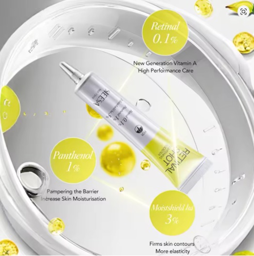 Com retinal 0,1%, ele atua na renovação da pele, ajudando a melhorar a aparência de linhas finas, textura irregular e sinais do tempo ao longo do uso. A fórmula combina potência e cuidado, trazendo panthenol 1% (vitamina B5) e ácido hialurônico 3%, que ajudam a manter a hidratação e o conforto da pele durante a rotina com retinoides.